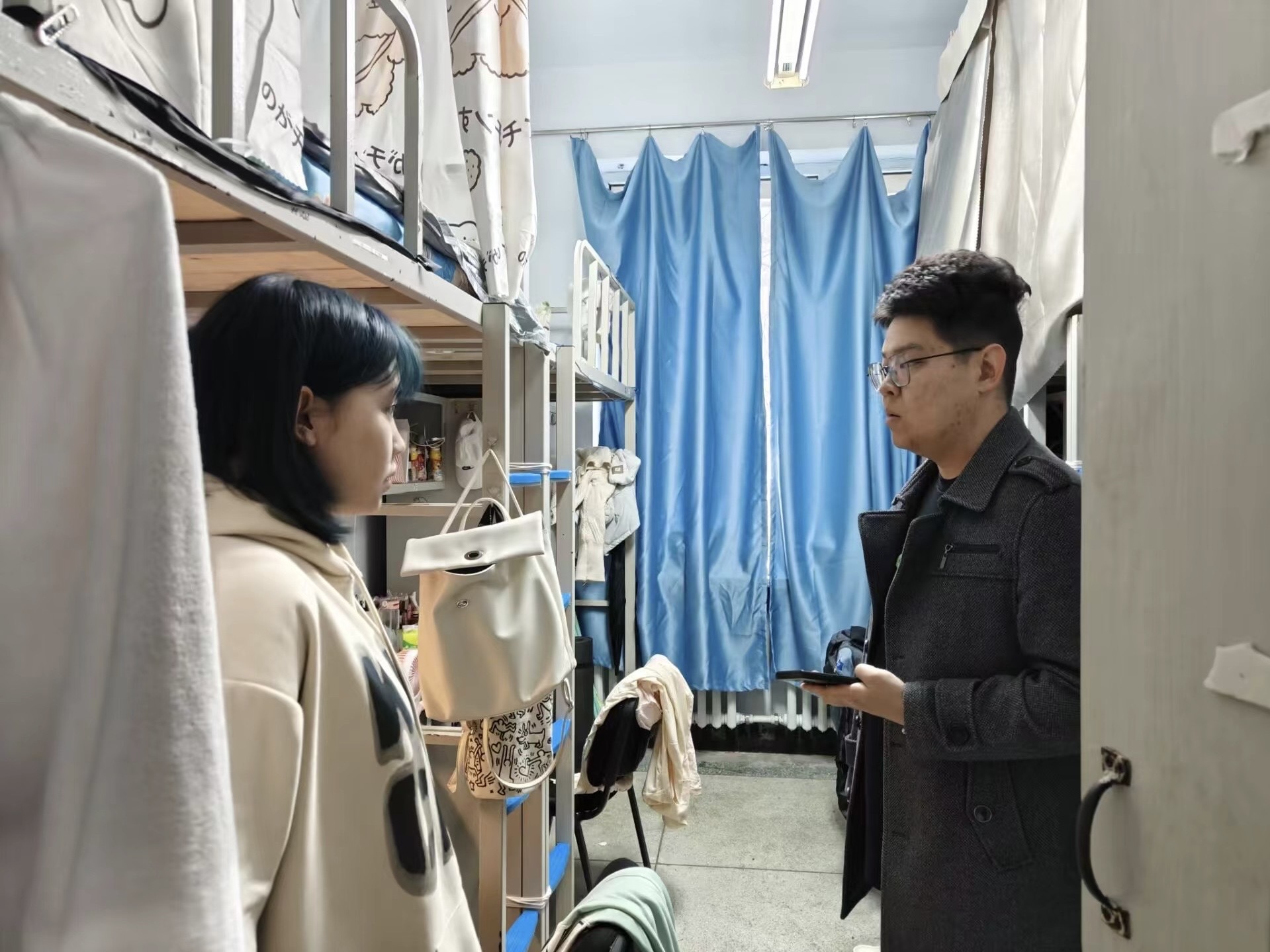 4月15日,2023级辅导员姜岳彤老师进入中心校区南苑二公寓21间寝室,对同学们近期学习状态,转专业学生的适应程度进行了解,并提醒同学们注意寝室卫生。同日,姜老师又深入环境类《分析化学》课堂,同任课教师了解教学进度及学生学习情况,本次课程118人全部按时到课。